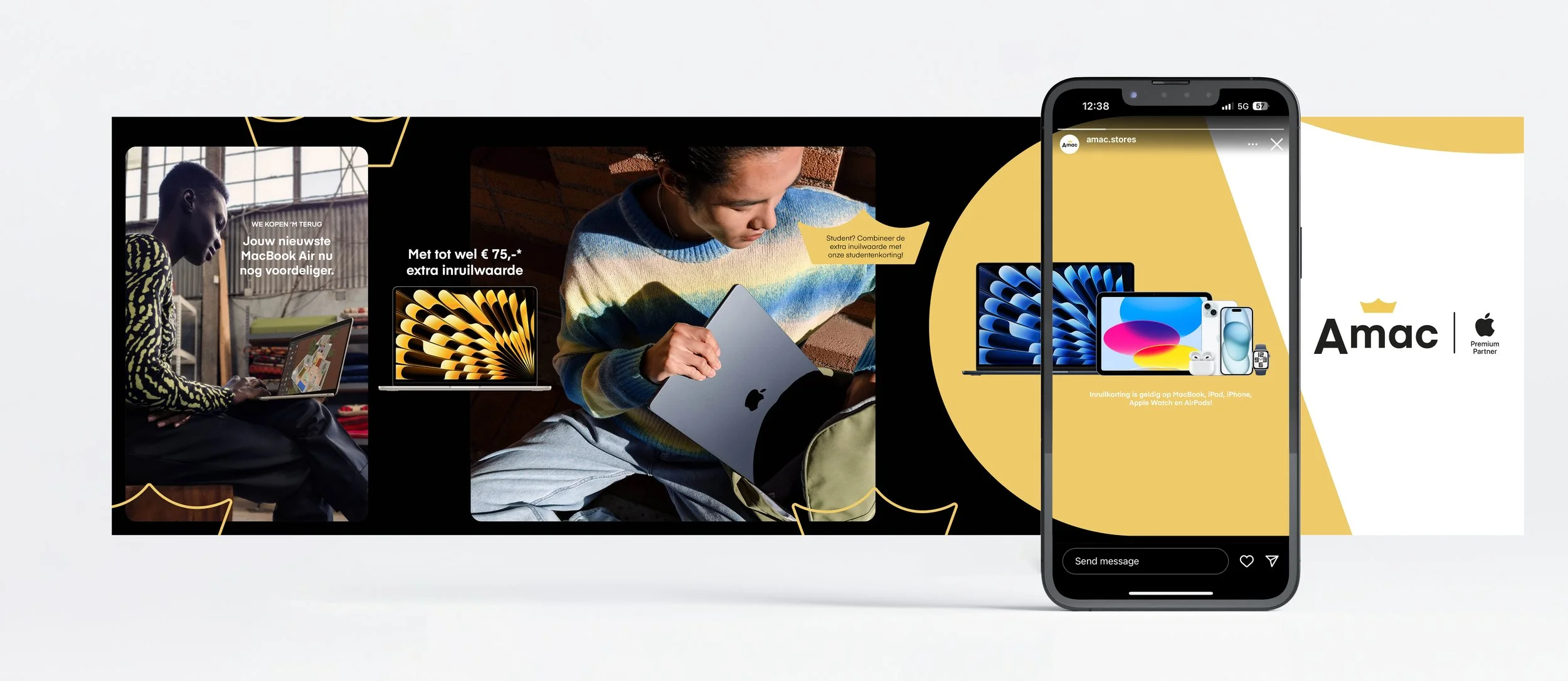 Van 2024 tot 2025 werkte ik bij Amac, waar ik werkte aan grafisch ontwerp en visuele communicatie voor Nederlands’ grootste en enigste Apple Premium Partner. Binnen het MarCom team werkte ik aan zowel interne als externe uitingen.