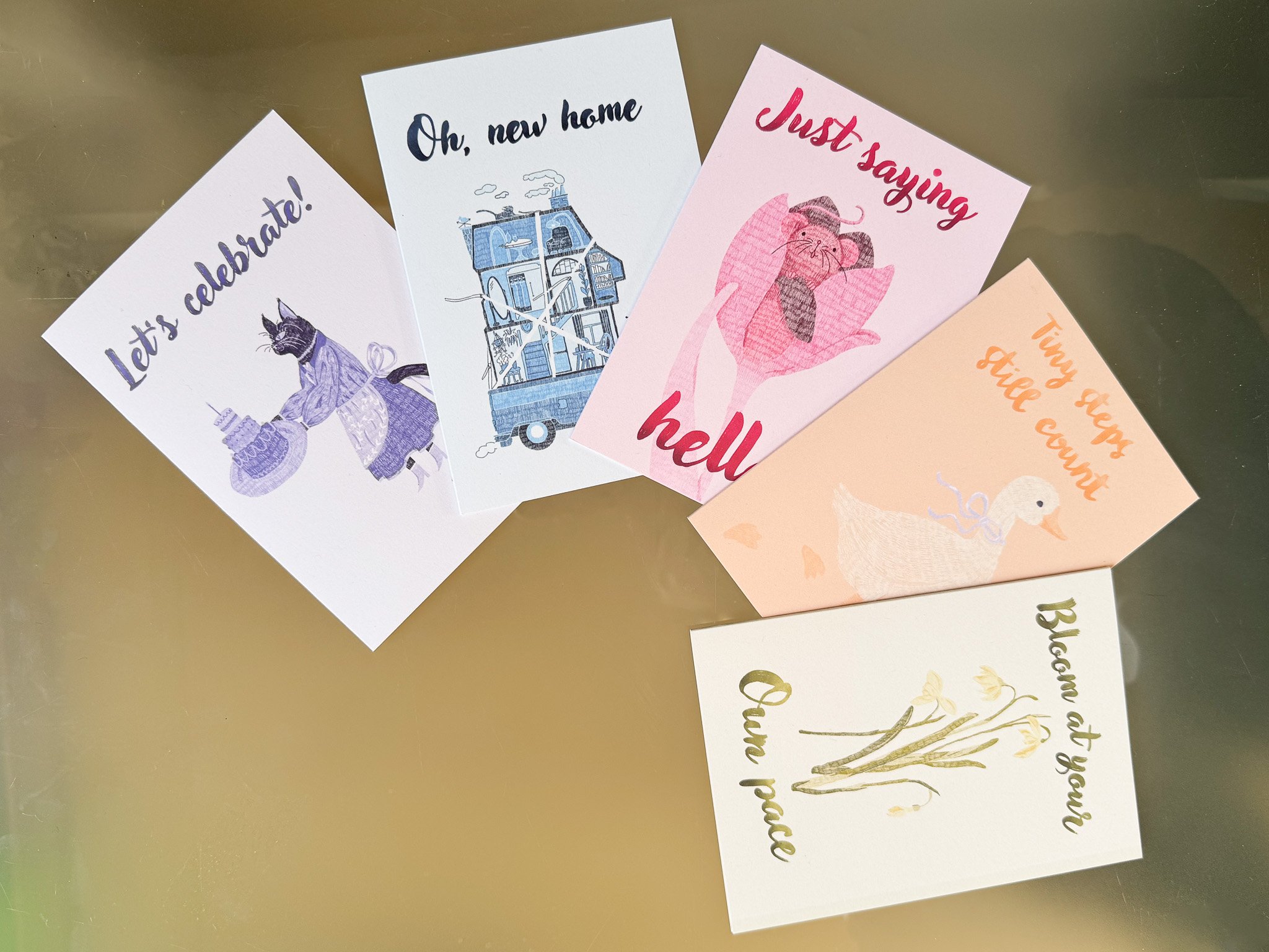 Er is altijd wel iets te vieren! Daarom heb ik een serie wenskaarten gemaakt die voor iedereen een glimlach op het gezicht tovert.
